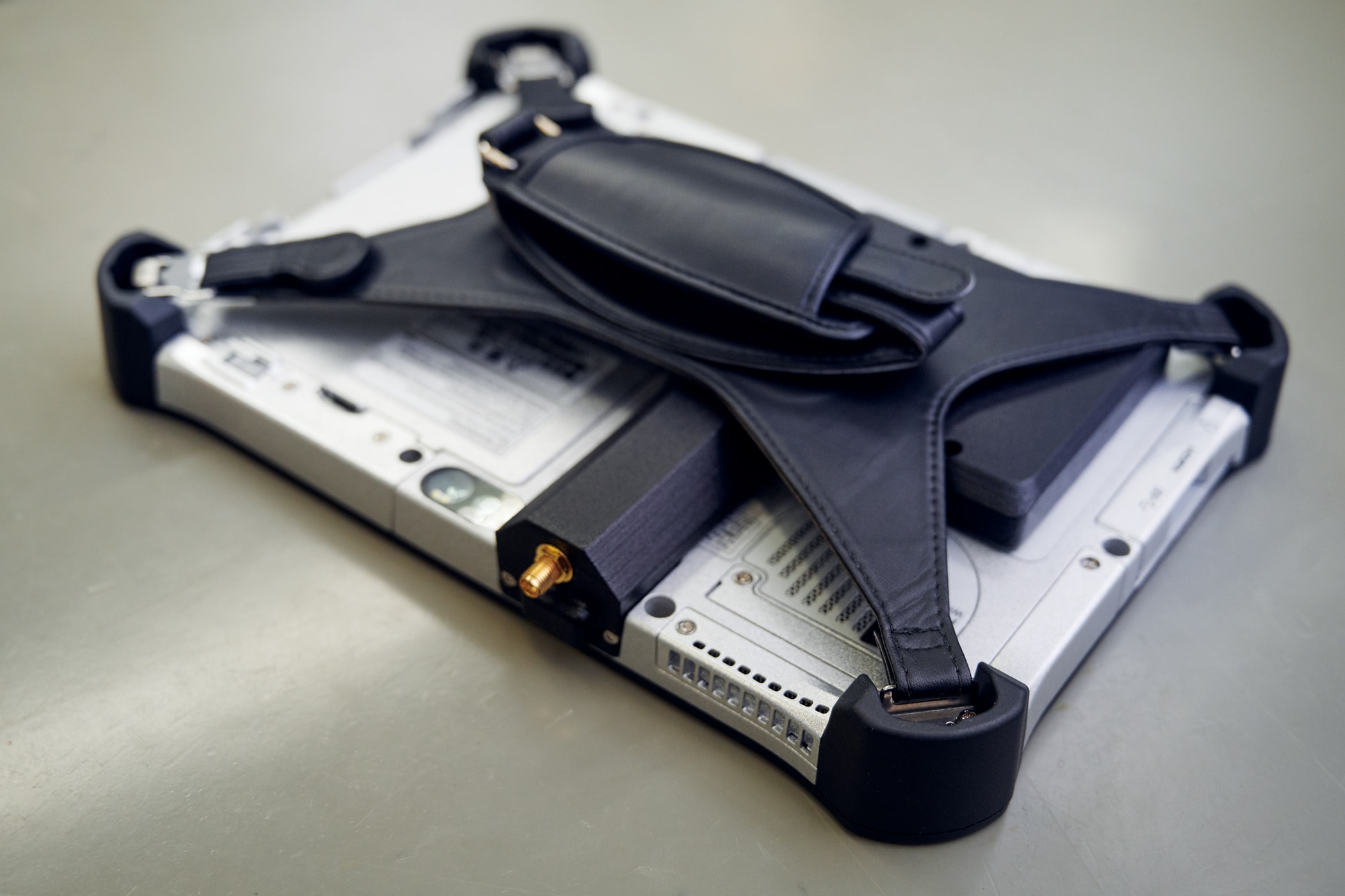 Alle unsere Funk-Module nutzen die mittlerweile 3. Generation unseres Gehäuses für Anbauten am Panasonic Toughpad FZ-G1. Basierend auf den Erfahrungen aus der Praxis wurde die interne Fixierung an die Hardware angepasst. Das schon bisher erfolgreiche Gehäuse wurde damit mit geringen Aufwand adaptiert.